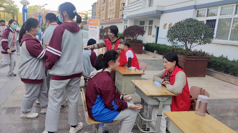 厉兵主任则带领志愿者在我校儒学广场做公益宣传和广场辅导活动,同学们积极踊跃的前来咨询,还收获了精美的书签礼品。
