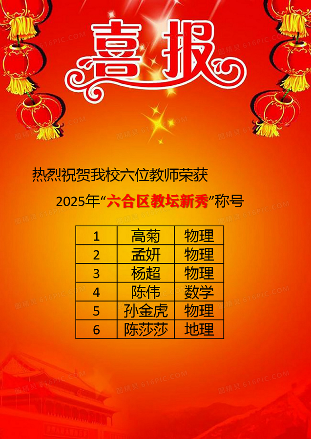热烈祝贺我校六位教师荣获2025年“六合区教坛新秀”称号